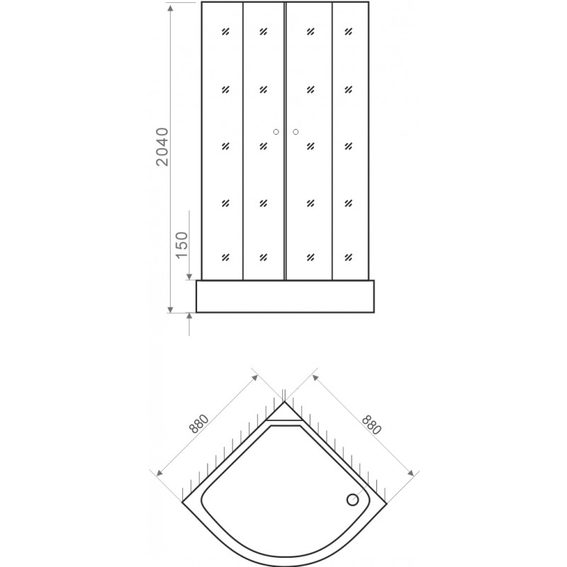 Стеклянная душевая кабина Domani-Spa Eco Delight 99 90x90 DS01EcD99LBT00 с двумя раздвижными дверьми, с открытым верхом, в форме четверти круга, для установки в угол ванной комнаты.