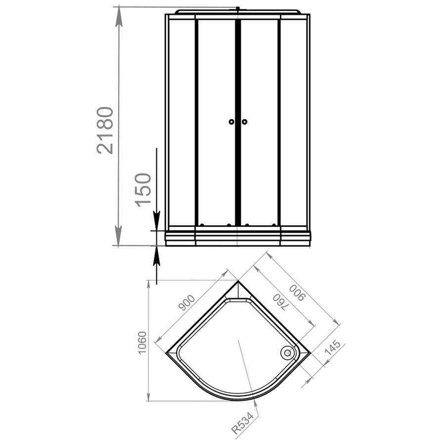 - Габариты (ШхГхВ): 90х90х218 см.