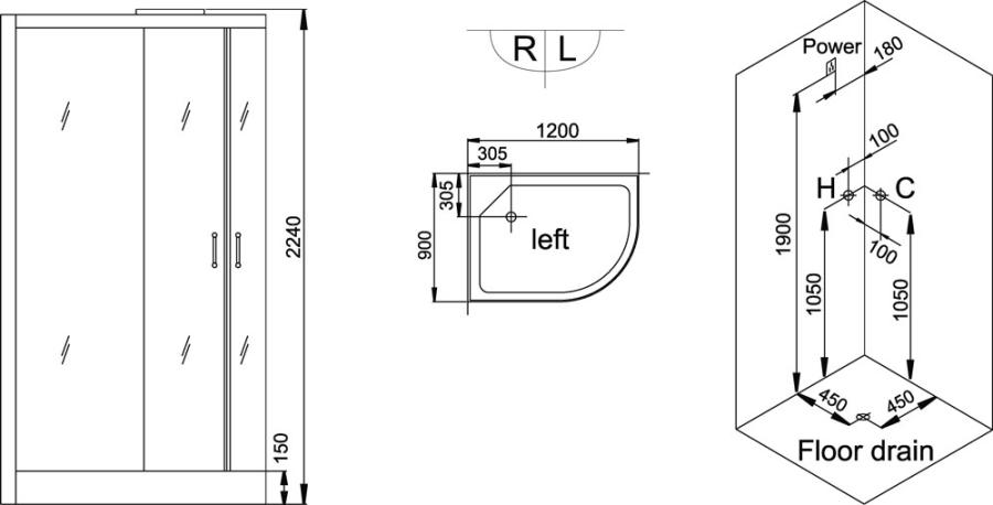 Душевая кабина Grande Home WS103L/S6/BB 120x90 L