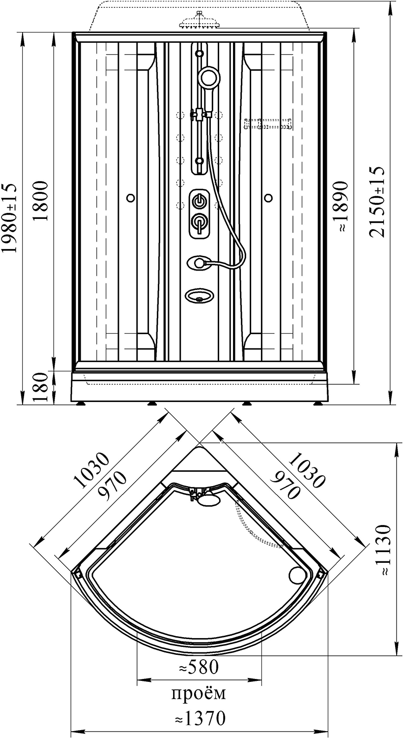 В комплекте поставки: душевая кабина, ручной душ, смеситель, поддон, каркас поддона.