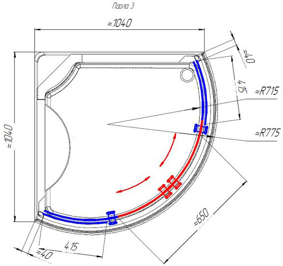 - Форма: четверть круга.