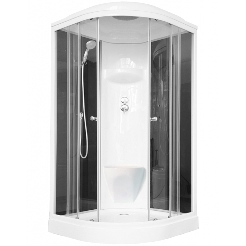 Душевая кабина в форме четверти круга оснащена двумя раздвижными дверцами. Превосходно будет сочетаться в интерьере любой стилистической направленности за счет изысканных форм и плавных линий. Внутри кабины имеется встроенное сидение, что добавит комфорта в повседневном использовании душевой кабины. Имеется крыша, поддон выполнен из прочного и приятного на ощупь акрила.