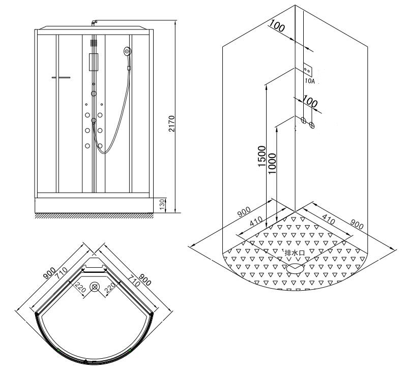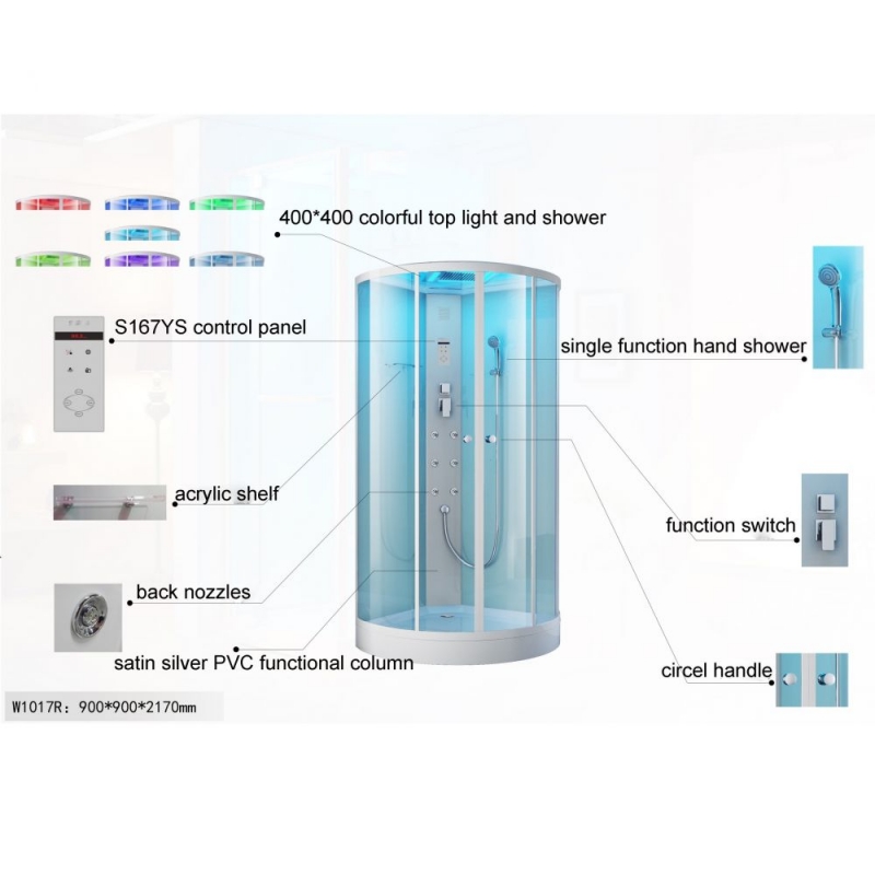 Технические характеристики:В комплекте поставки: душевая кабина, электронная панель с функцией FM-радио крепежные элементы, верхний душ, инструкция.
