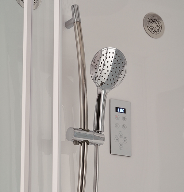 - Верхний душ: тропический. Верхний душ, дверные ручки, накладки на динамик и вентилятор - из нержавеющей стали.