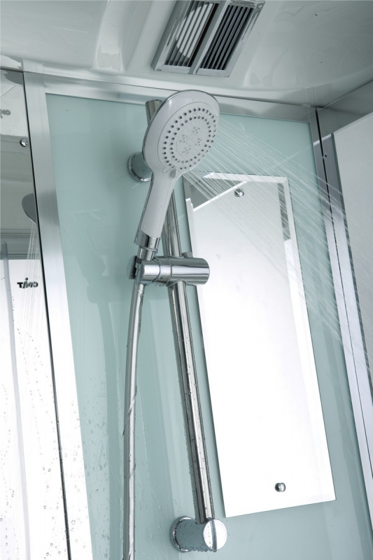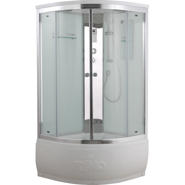 С верхним душем, радио, подсветка, ручной душ |