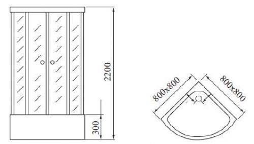 Душевая гидромассажная кабина T-1180. В комплектацию входит: поддон - 35 см, съемный экран, сливная система clik-clak с сифоном, анодированный алюминиевый профиль (матовый хром), закаленное стекло 5 мм, сенсорный пульт управления, подсветка верхняя и боковая, FM-радио, вентиляция, смеситель однорычажный - три режима, тропический душ, лейка, спинной массаж 6 форсунок, двойные ролики, стеклянная полочка.