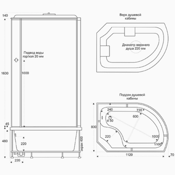 С ручным душем, верхний душ |