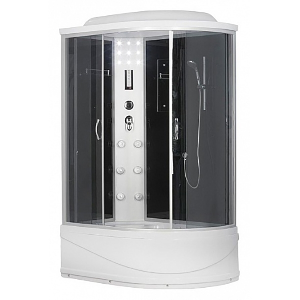 Кабина оснащена тропическим душем, ручным душем с регулировкой высоты, верхней подсветкой, лунным светом FM-радио, подключением к телефонной линии, вентилятором, зеркалом и полочкой.