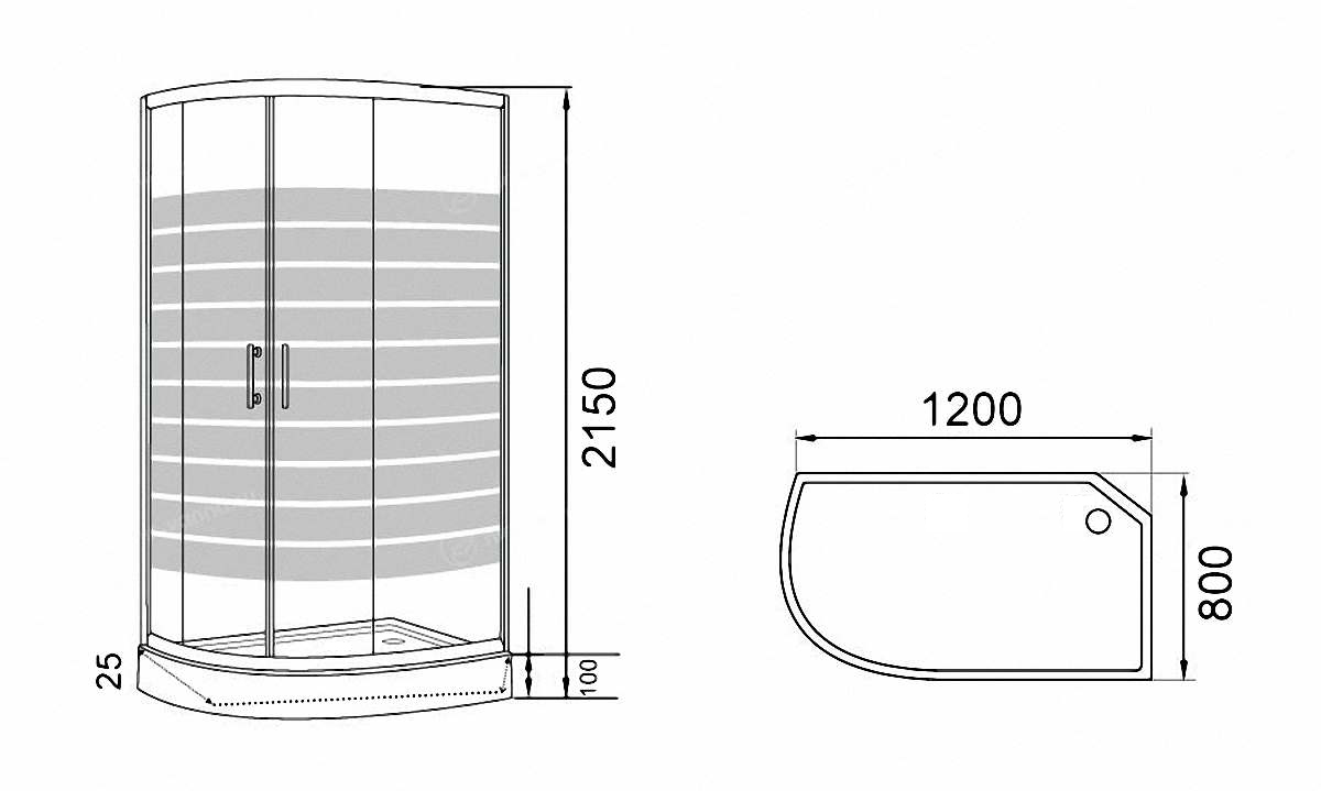 Душевая кабина Parly Classic Эконом EC121R 120х215 профиль Сатин стекло тонированное