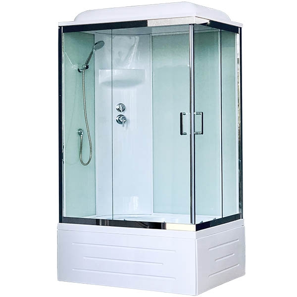 Прямоугольная душевая кабина оснащена двумя раздвижными дверцами. Превосходно будет сочетаться в интерьере любой стилистической направленности за счет изысканных форм и плавных линий.