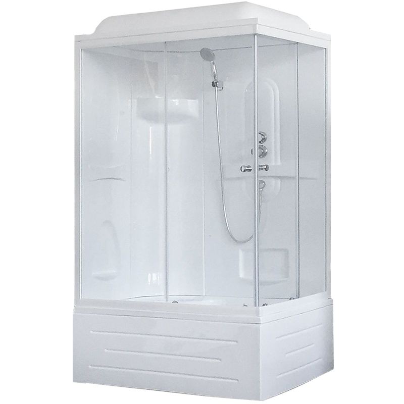 Прямоугольная душевая кабина оснащена двумя раздвижными дверцами. Превосходно будет сочетаться в интерьере любой стилистической направленности за счет изысканных форм и плавных линий. Внутри кабины имеется встроенное сидение, что добавит комфорта в повседневном использовании душевой кабины Имеется крыша, поддон выполнен из прочного и приятного на ощупь акрила.