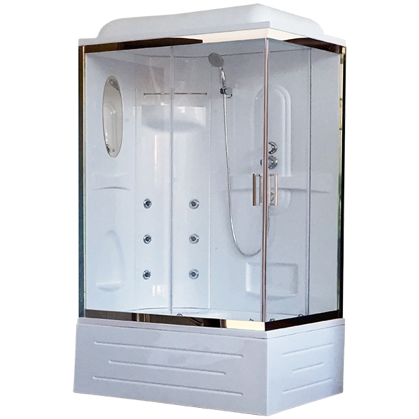 Прямоугольная душевая кабина оснащена двумя раздвижными дверцами. Превосходно будет сочетаться в интерьере любой стилистической направленности за счет изысканных форм и плавных линий.