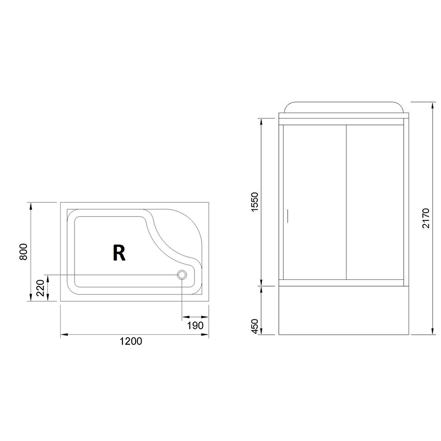 Душевая кабина Royal Bath BP 120х80 RB8120BP6-BT-CH-R стекло прозрачное задняя стенка Черная