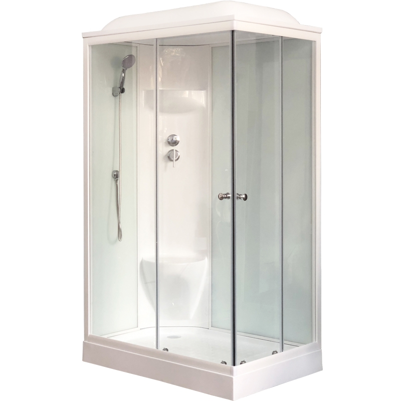 Прямоугольная душевая кабина оснащена двумя раздвижными дверцами. Превосходно будет сочетаться в интерьере любой стилистической направленности за счет изысканных форм и плавных линий. Внутри кабины имеется встроенное сидение, что добавит комфорта в повседневном использовании душевой кабины. Имеется крыша, поддон выполнен из прочного и приятного на ощупь акрила.