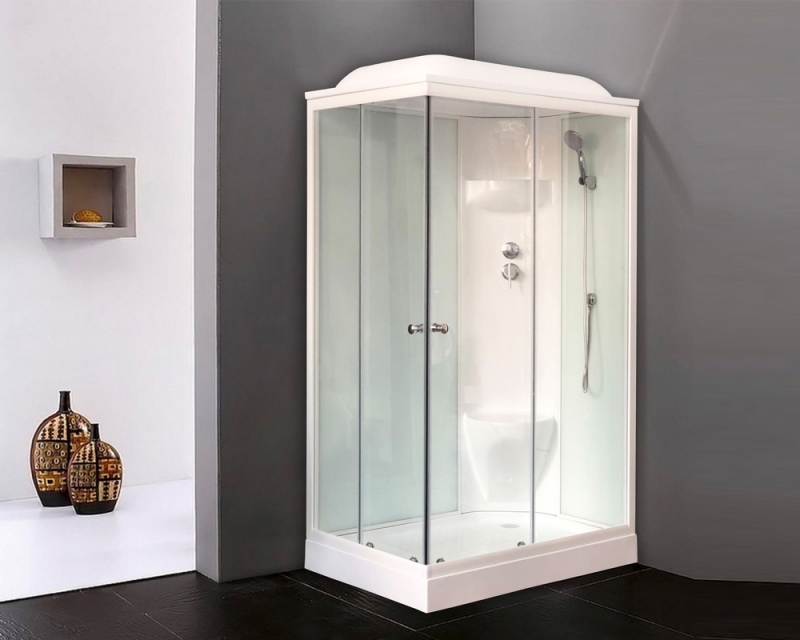 Прямоугольная душевая кабина оснащена двумя раздвижными дверцами. Превосходно будет сочетаться в интерьере любой стилистической направленности за счет изысканных форм и плавных линий. Внутри кабины имеется встроенное сидение, что добавит комфорта в повседневном использовании душевой кабины. Имеется крыша, поддон выполнен из прочного и приятного на ощупь акрила.