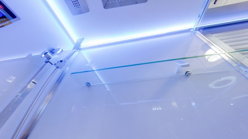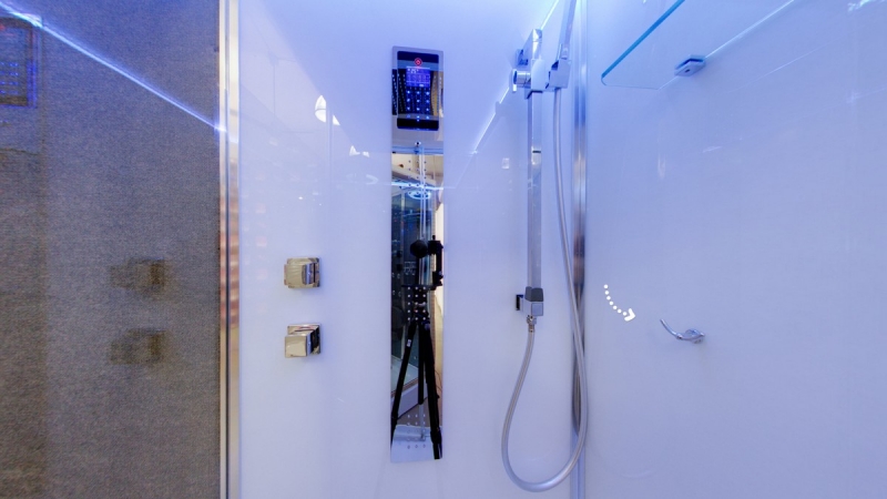 С радио, подсветка, ручной душ, верхний душ |