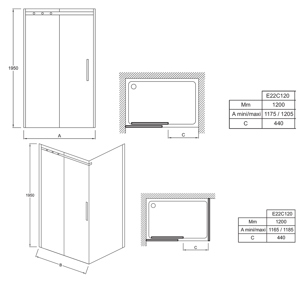 Душевая дверь Jacob Delafon Contra 120 E22C120-GA профиль Хром стекло прозрачное