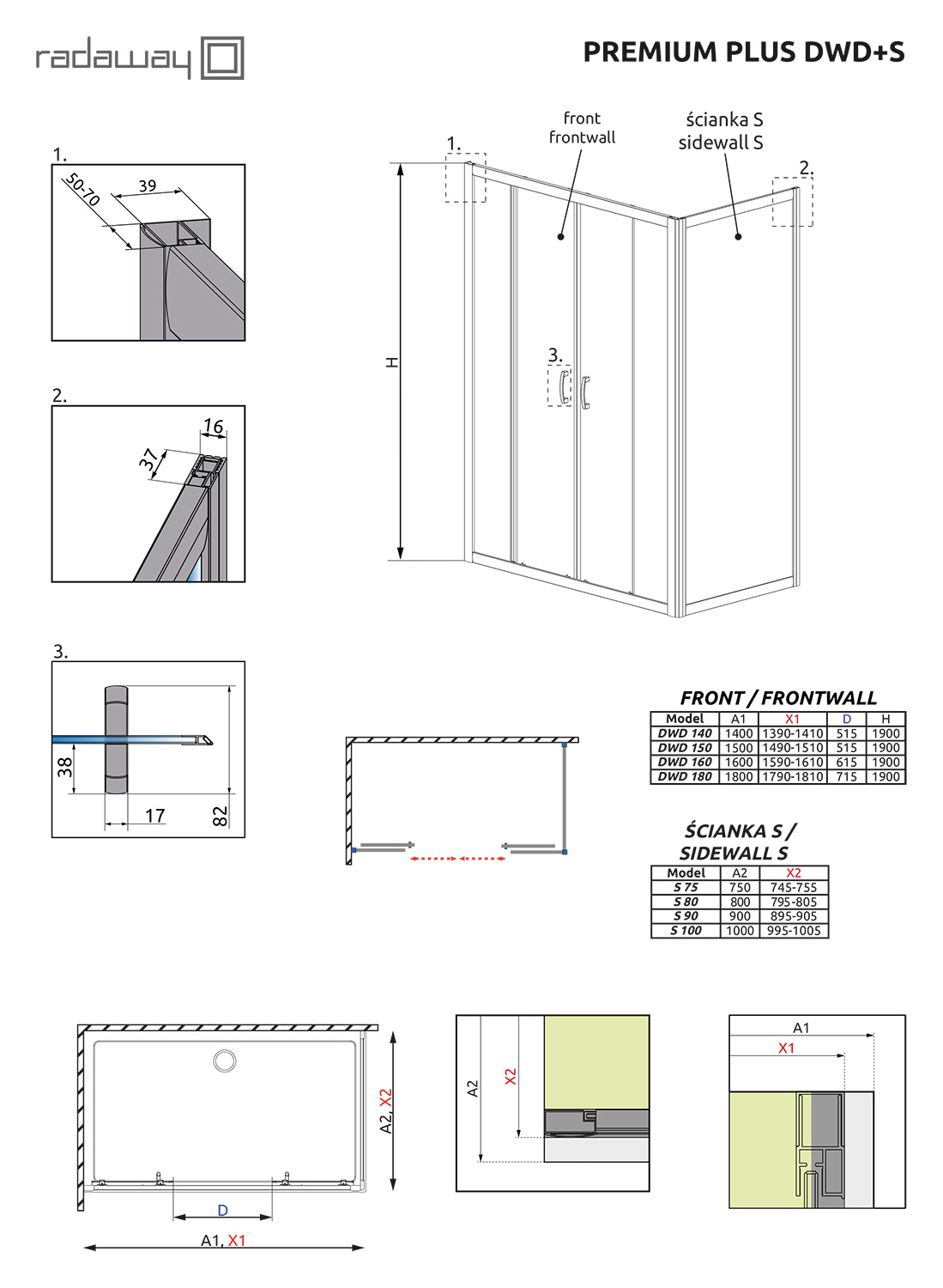 - Монтаж: в нишу, на поддон или непосредственно на пол.