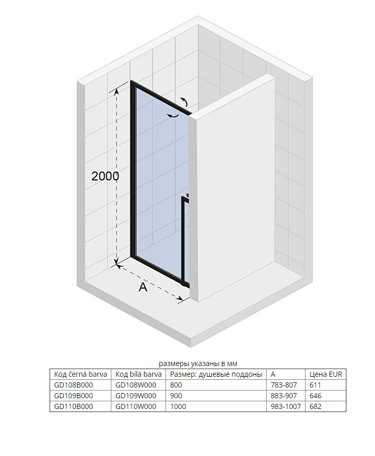 В комплекте поставки: душевая дверь.
