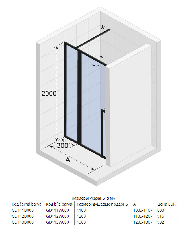 В комплекте поставки: душевая дверь.