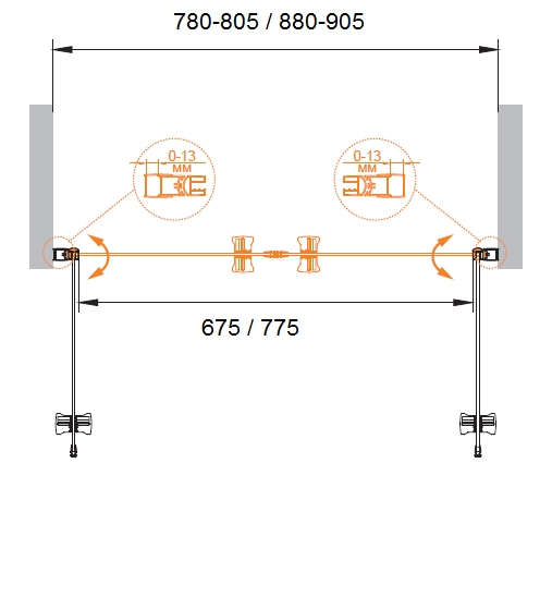 - Регулировка ширины предусмотрена за счет боковых профилей.