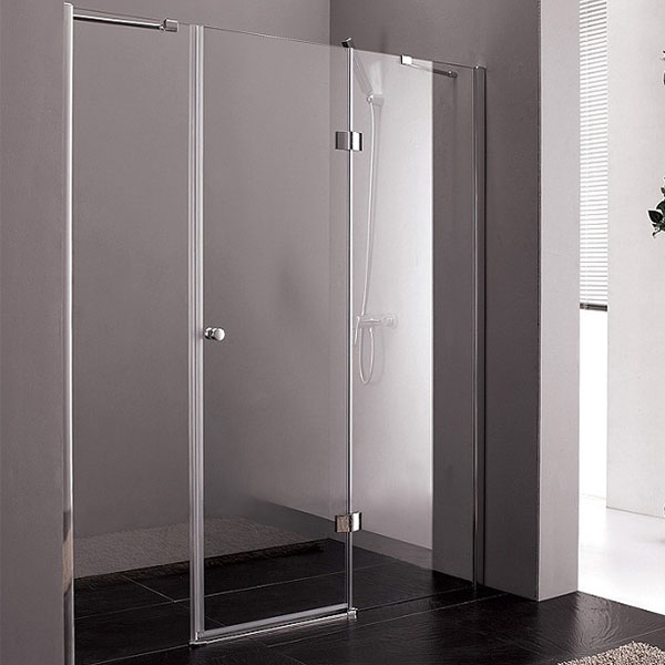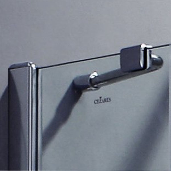 Распашная душевая дверь в нишу Cezares Verona с прозрачными полотнами из закаленного стекла и профилем из анодированного алюминия. Ширина может регулироваться за счет боковых профилей.