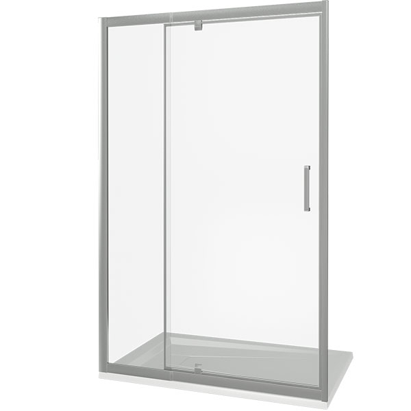 Распашная душевая дверь Good Door Orion с полотнами из закаленного стекла и профилем из высококачественного анодированного алюминия. Ширина может регулироваться за счет боковых профилей.