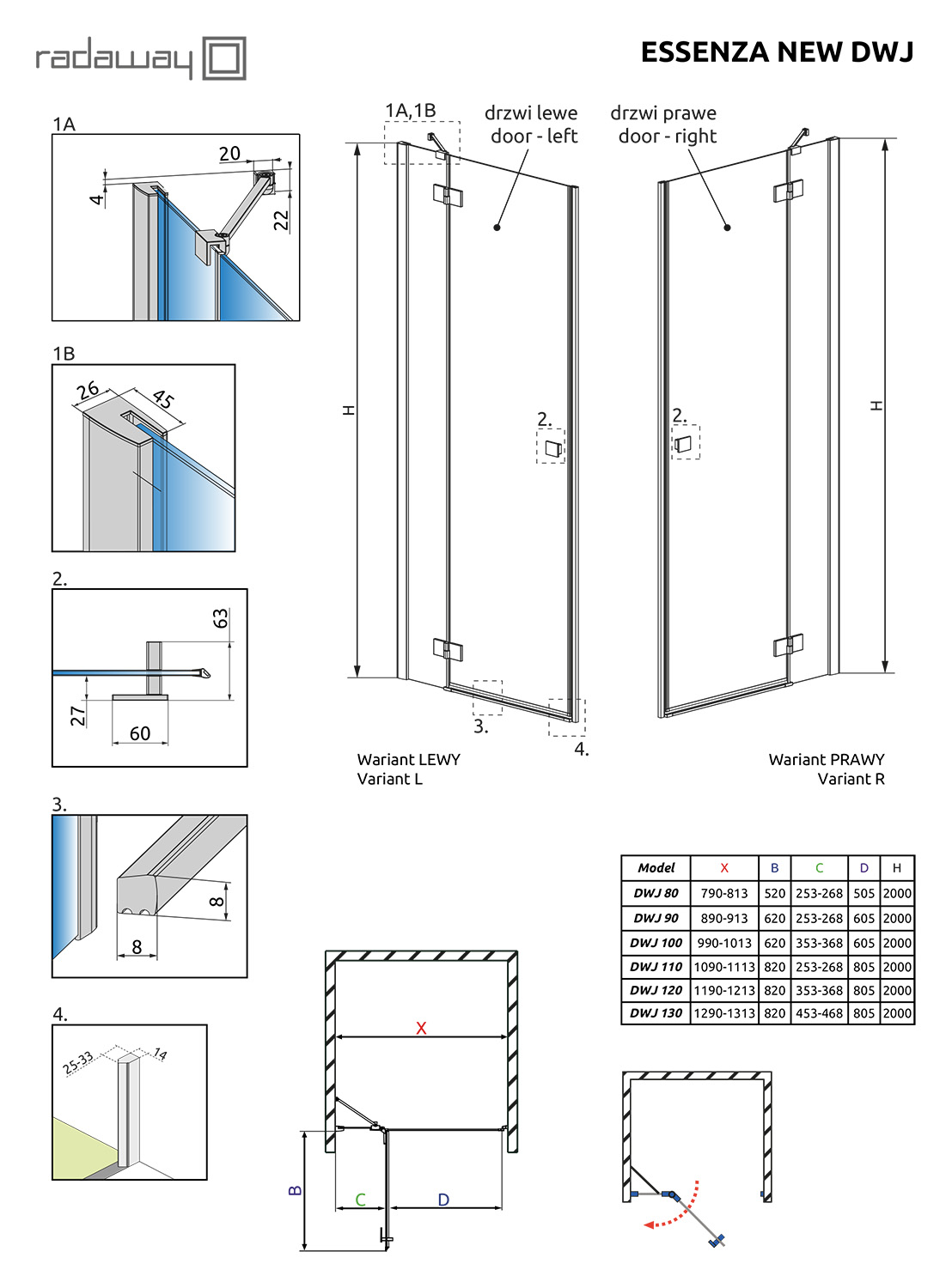 Стеклянная душевая дверь в нишу Radaway Essenza New DWJ 100 385014-01-01L с одной распашной створкой, с элегантной хромированной фурнитурой. Устанавливается на поддон или непосредственно на пол. Магнитный уплотнитель обеспечивает герметичность и устойчив к влаге и изменениям температуры. Прочное закаленное стекло безопасно в случаях повреждений. Водоотталкивающее защитное покрытие Easy Clean не позволяет каплям воды удерживаться на поверхности стекла и оставлять следы.