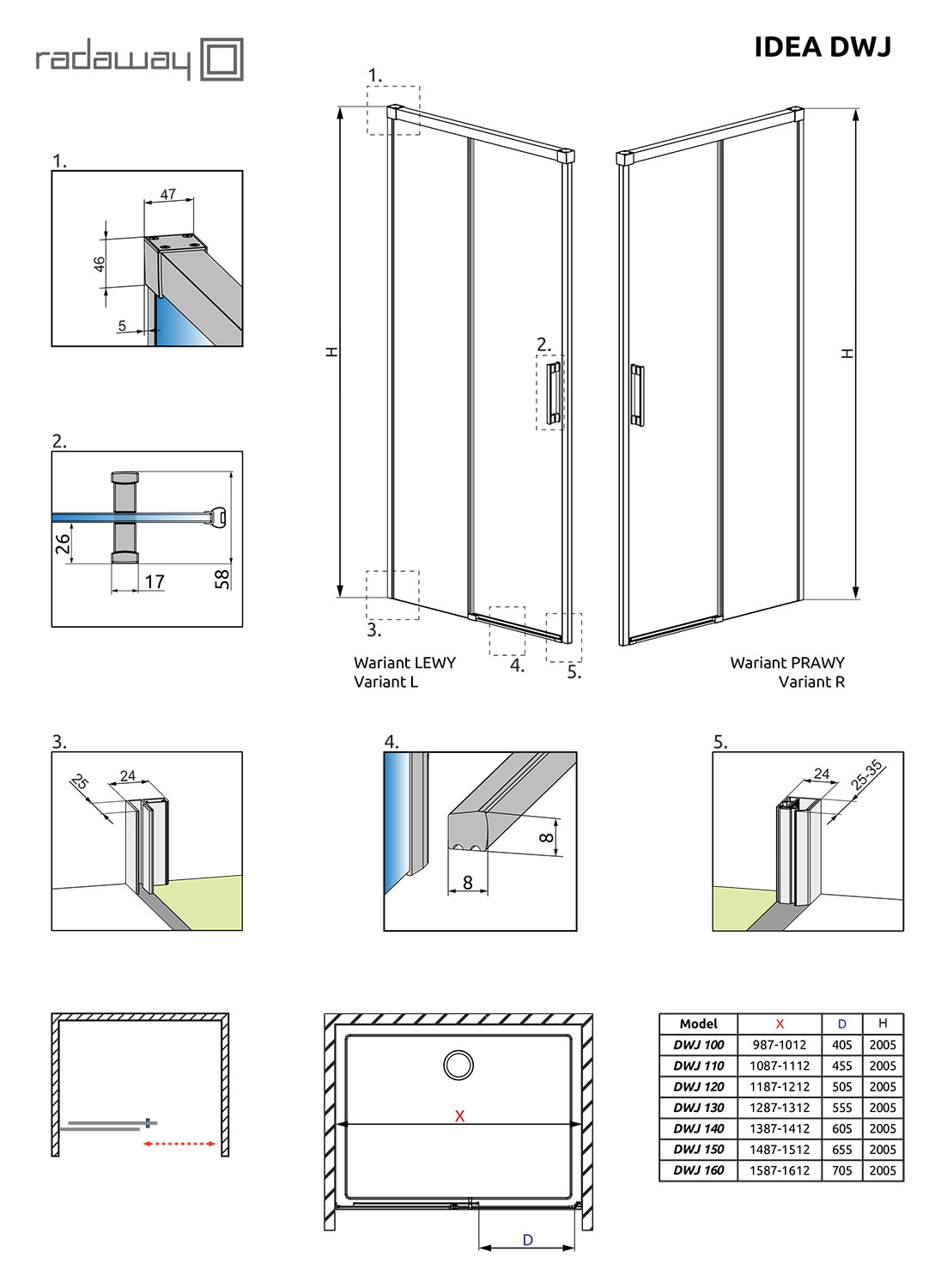 - Монтаж: в нишу, на поддон или непосредственно на пол.