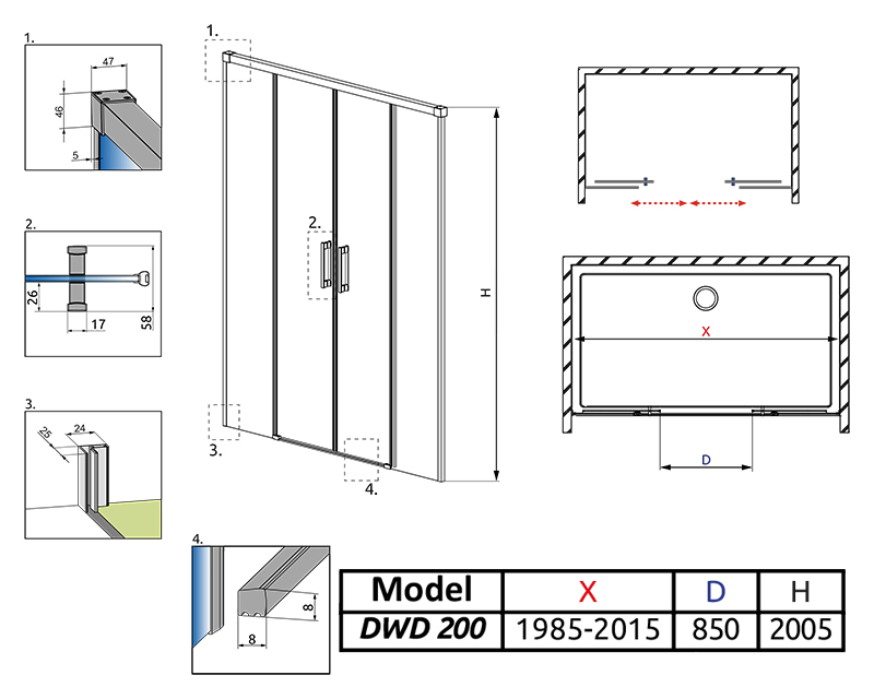 Допускается установка с порогом или без, меняя нижний фиксатор.