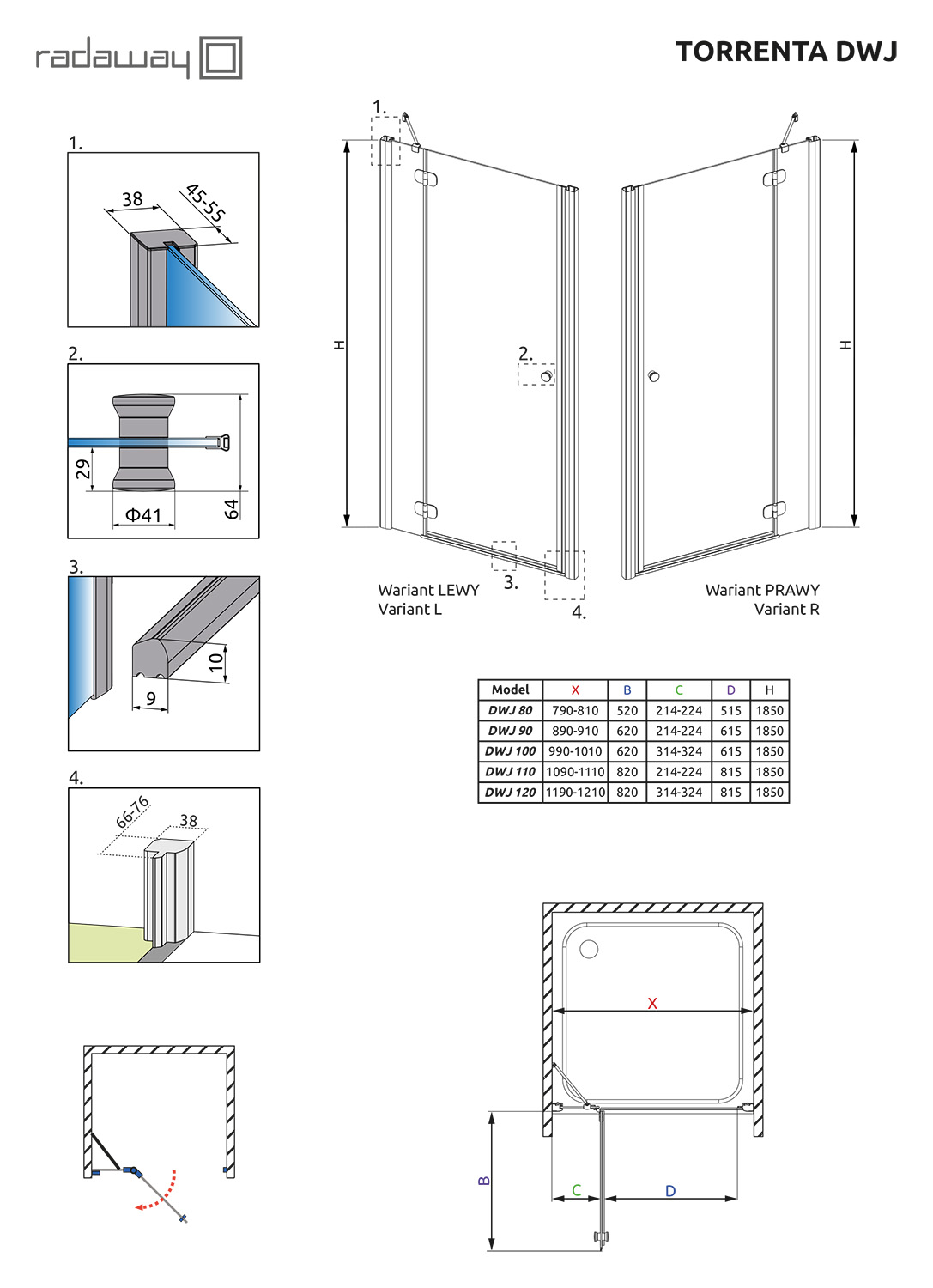 Стеклянная душевая дверь в нишу Radaway Torrenta DWJ 100 31920-01-01N с элегантной хромированной фурнитурой, с одной распашной створкой, открывающейся наружу. Устанавливается на поддон или непосредственно на пол. Магнитный уплотнитель обеспечивает герметичность и устойчив к влаге и изменениям температуры. Прочное закаленное стекло безопасно в случаях повреждений. Водоотталкивающее защитное покрытие Easy Clean не позволяет каплям воды удерживаться на поверхности стекла и оставлять следы.
