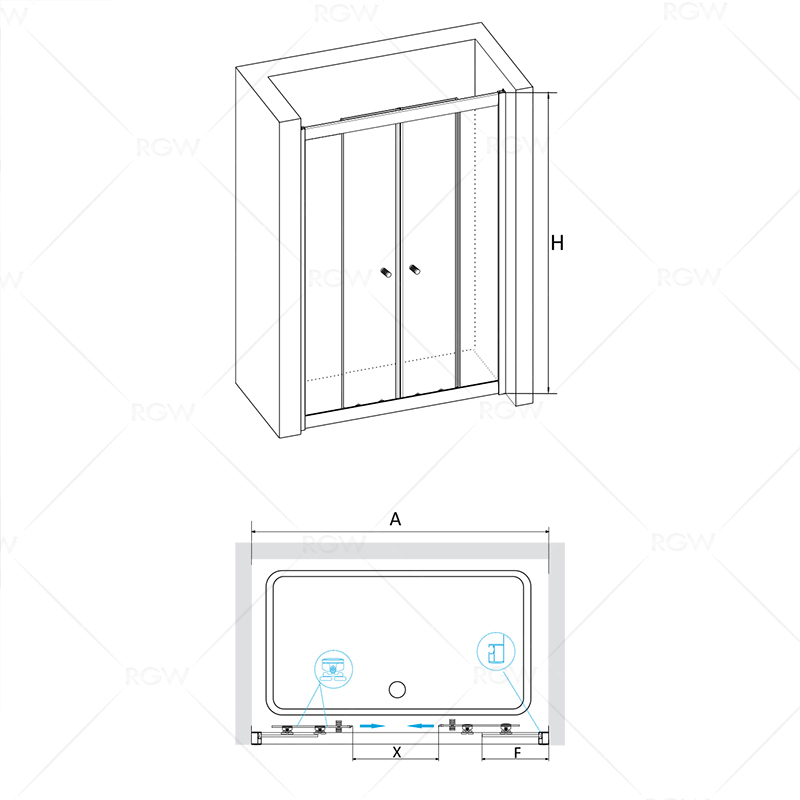 Стеклянная раздвижная душевая дверь в нишу RGW Classik CL-10 150 04091015-11. Двери плавно разъезжаются от середины в разные стороны.