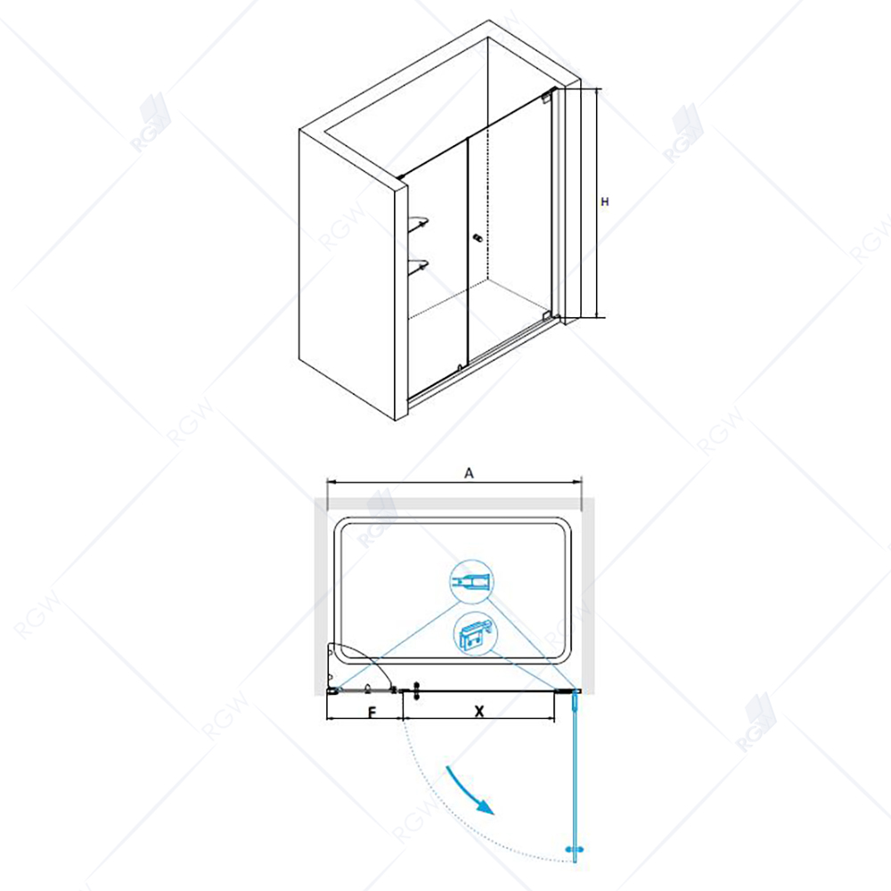 Стеклянная распашная душевая дверь в нишу RGW Hotel HO-05 140 01060514-11. Универсальная установка открытия двери.