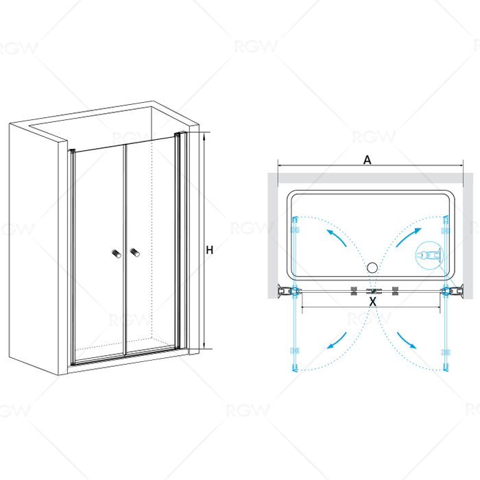 Стеклянная распашная маятниковая душевая дверь в нишу RGW Passage PA-04 85 04080485-11.