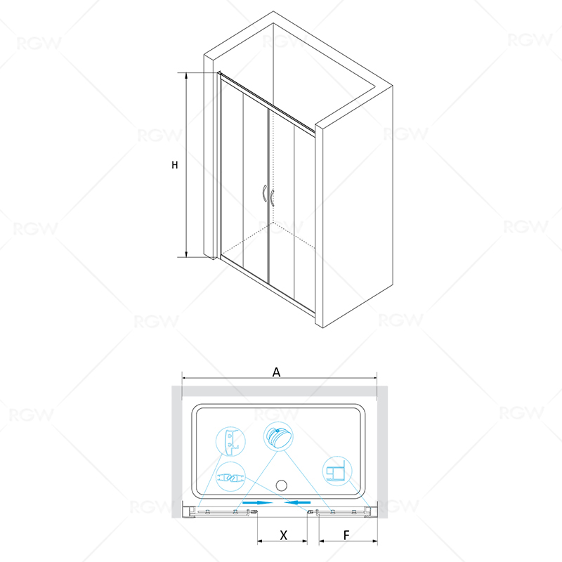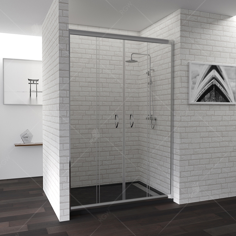 Стеклянная раздвижная душевая дверь в нишу RGW Passage PA-11 120 01081112-11. Дверцы двери разъезжаются плавно от середины в разные стороны.