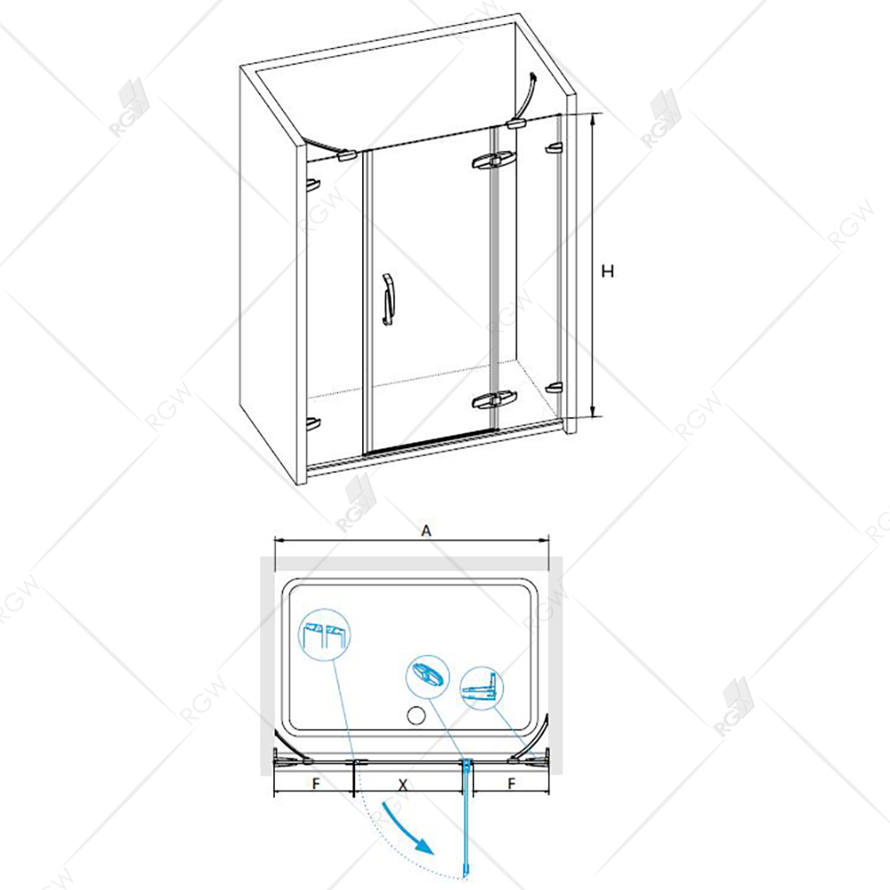 Стеклянная распашная душевая дверь в нишу RGW Safari SA-01 180 02030118-11. Универсальная установка. Регулируемые пристенные петли.