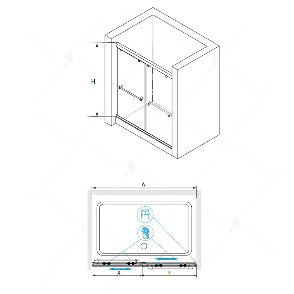 Стеклянная раздвижная душевая дверь в нишу RGW Tornado TO-11 180 01071118-11 на бесшумных роликах. Раздвижные двери купе, оба полотна подвижны. Отсутствие боковых профилей создает уникальный вид бескаркасной двери.