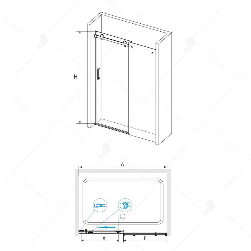 Стеклянная раздвижная душевая дверь в нишу RGW Tornado TO-14 170 02071417-11 на больших бесшумных роликах. Установка открытия двери с левой или правой стороны стены.