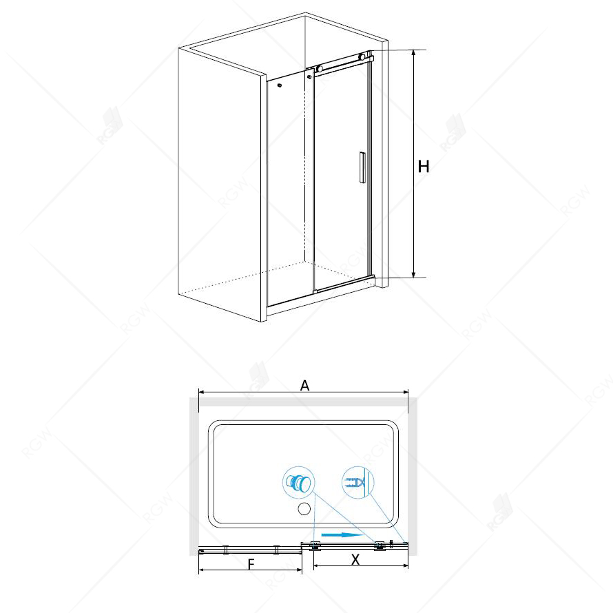 Стеклянная раздвижная душевая дверь в нишу RGW Tornado TO-15 150 03071515-11 на больших бесшумных роликах. Установка открытия двери с левой или правой стороны.