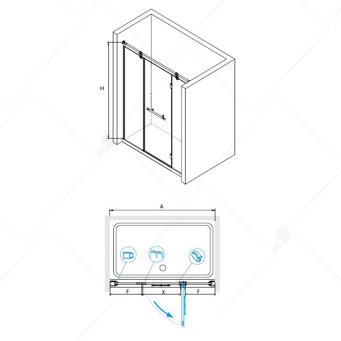 Стеклянная распашная душевая дверь в нишу RGW Viscount VI-02 170 02040217-18. Универсальная установка. Регулируемые пристенные петли.
