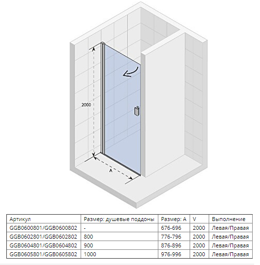 Душевая дверь в нишу Riho Nautic 90x200 N101 GGB0604801 распашная, открывающаяся наружу.