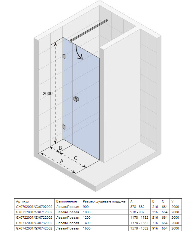 Душевая дверь в нишу Riho Scandic Mistral M102 140x200 GX0732001, распахивающаяся наружу, петли слева.