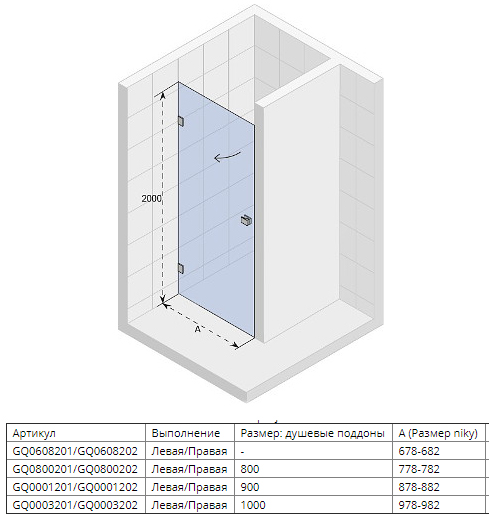 Душевая дверь в нишу Riho Scandic Soft Q101 90x200 GQ0001201, распахивающаяся наружу, петли слева.