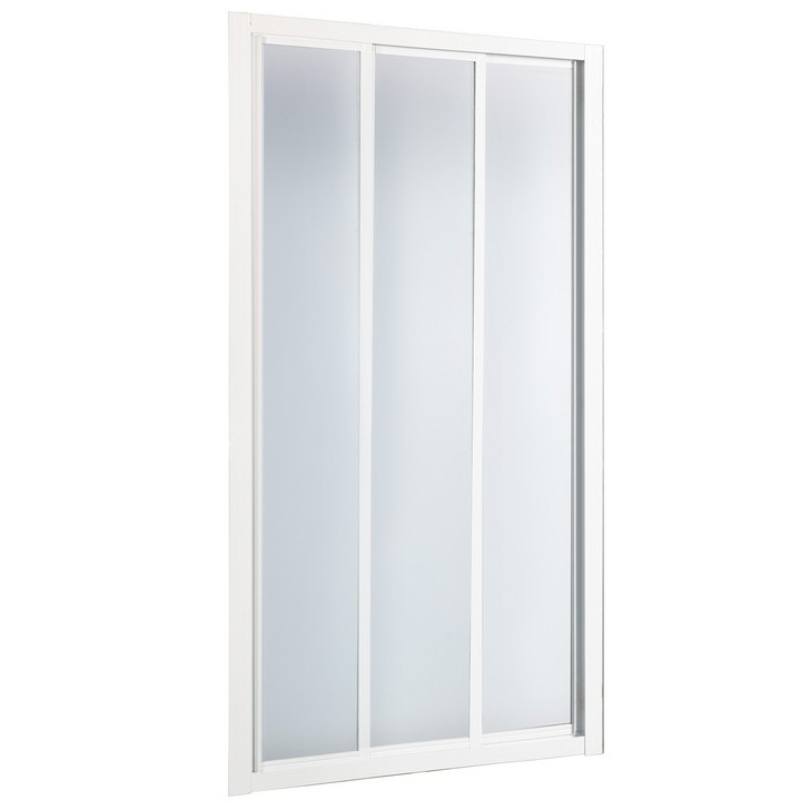 Душевой уголок River La Manche 90 МТ 10000000109 Белый профиль. Трехсекционная раздвижная конструкция двери дает возможность открытия створок влево и вправо. За счет боковых регулировочных профилей можно отрегулировать ширину двери (+2 см. от размера).