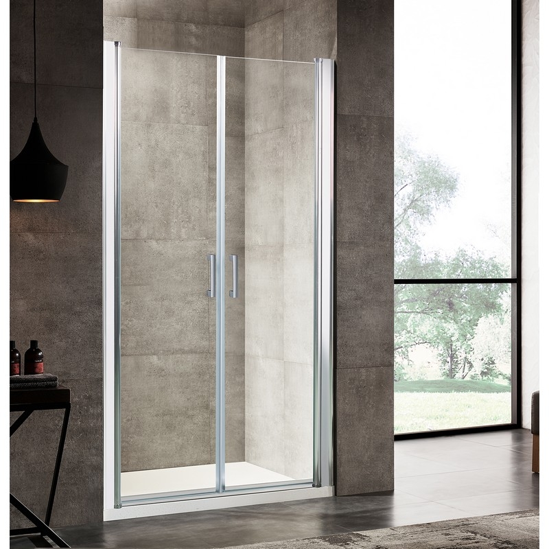 Душевая дверь в нишу River Suez 100 МТ 10000001116. Распашные створки имеют возможность открытия двери с фиксацией,как внутрь ниши, так и наружу . За счет боковых регулировочных профилей можно отрегулировать ширину двери (+2 см. от размера).