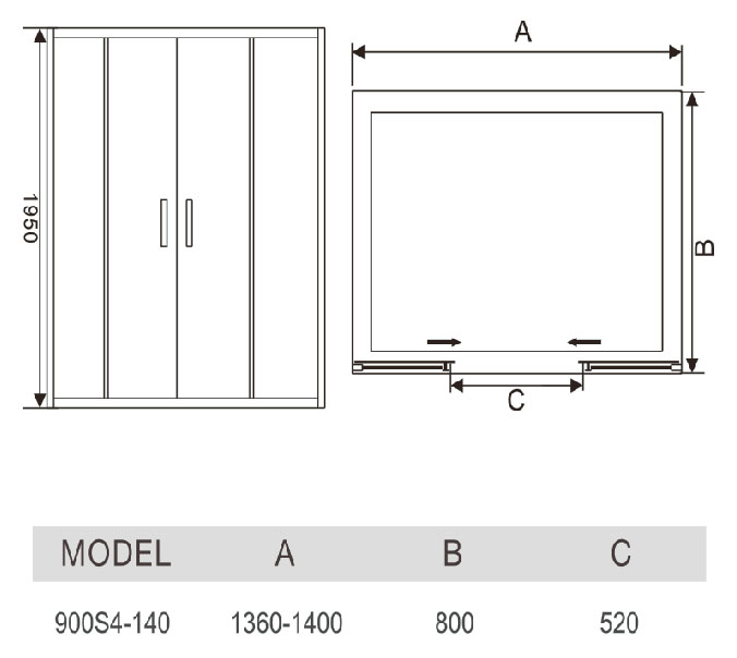 Стеклянная душевая дверь в нишу WeltWasser WW900 140 900S4-140. Четыре створки: две подвижные и две неподвижные. Стильные металлические ручки. Надежное стекло 8 мм. Регулируемый боковой профиль: 2 см. Бесшумные и надежные ролики мягко и удобно открывают двери. Механизм плавного закрывания. Испытано на 100000 открываний.
