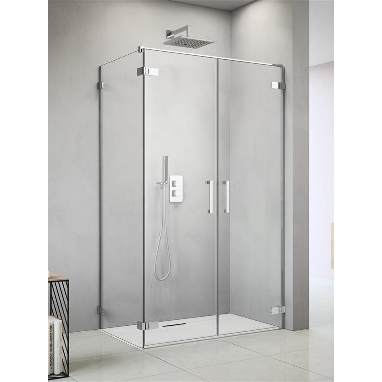 Крепится к стене при помощи хромированных петель типа стена-стекло 180 градусов с регулировкой до 6 мм. Устанавливается на пол или поддон.