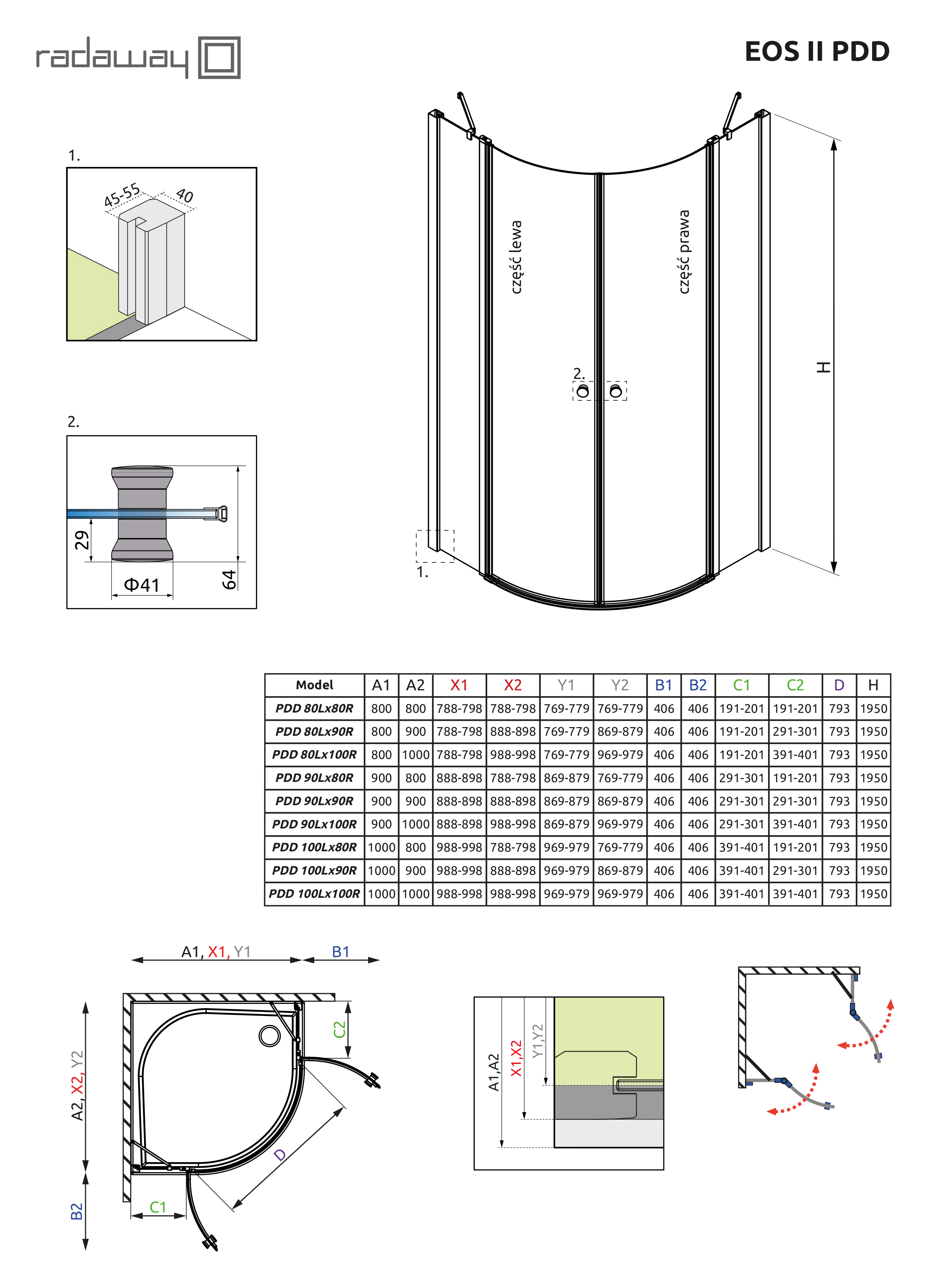 Дверь для душевого уголка Radaway Eos II PDD 100x195 правая профиль хром, стекло прозрачное, правая