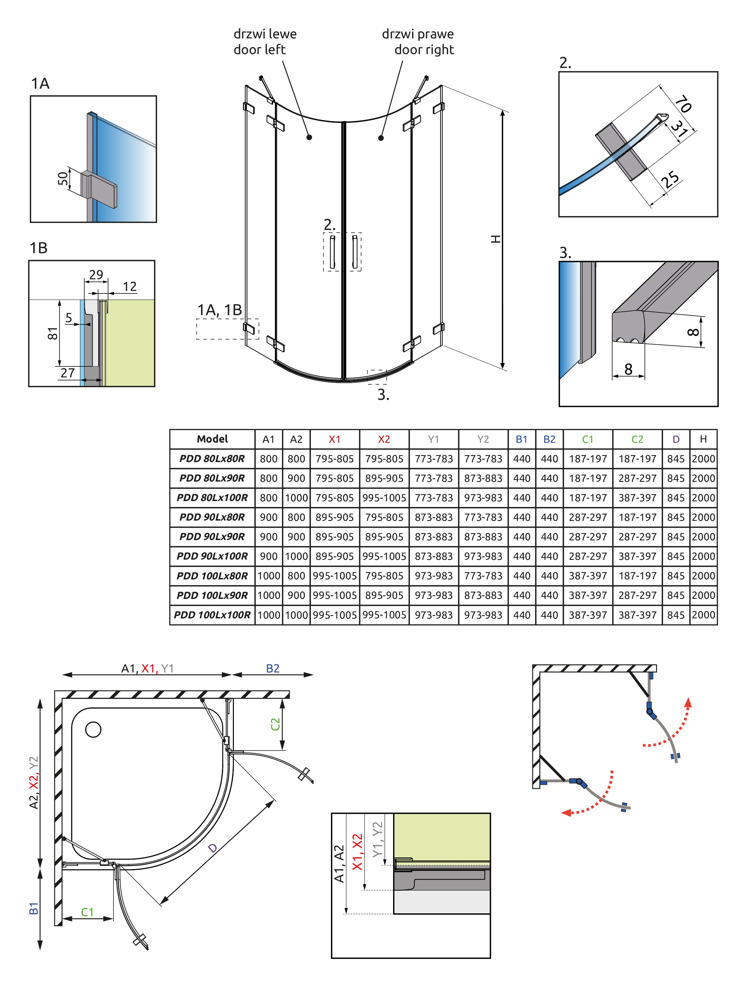 Стеклянная дверь Radaway Euphoria PDD 100x200 383003-01L левая для образования душевого уголка