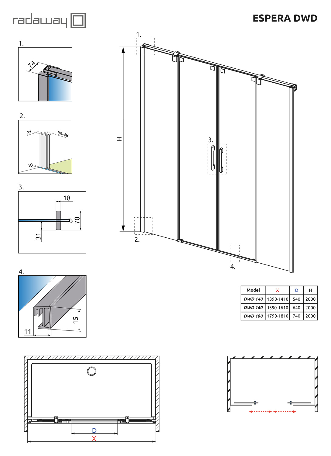 Раздвижные створки для душевой двери в нишу Radaway Espera DWD 180 380280-01 с элегантной хромированной фурнитурой. Магнитный уплотнитель обеспечивает герметичность и устойчив к влаге и изменениям температуры. Прочное закаленное стекло безопасно в случаях повреждений. Водоотталкивающее защитное покрытие Easy Clean не позволяет каплям воды удерживаться на поверхности стекла и оставлять следы.